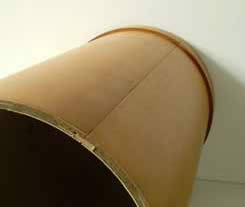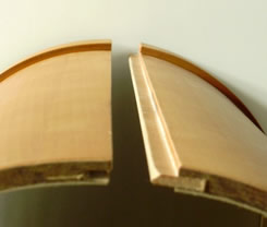 Tömör fa alapanyag esetén számolhatunk a szokásos tömörfás problémákkal: drága a szárított alapanyag, főleg a divatos dió, wenge, makasszár ében, egzóták - esetén. A tömörfa kevéssé bírja a gázfűtést: a túl száraz, meleg klímában vetemedik, reped, összeszárad. Nagyobb átmérőknél, betonoszlopok, pillérek takarásánál, szinte megoldhatatlan a probléma: hogyan készítsünk kör keresztmetszetű oszlopot, borítást fából, 30-40 cm átmérővel, több méteres hosszban? Ebből többnyire kompromisszumos megoldások születnek: négy - nyolc szögletű furnérozott "oszlopok" sok munkával, hosszas helyszíni szereléssel, drágán. És még mindig messze volt a végeredmény az áhított kör oszloptól!