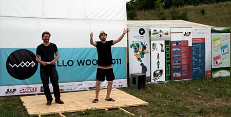 Kilenc hazai és három határon túli egyetemről 55 diák vett részt a MOME line - design műhely és az ÚJIRÁNY csoport által megrendezett idei egyhetes alkotótáboron, Pozsár Péter és Bakos Maxim szervezésében. A bővített programnak megfelelően a Wood, a Tipo és a Film témában láthattunk munkákat. Csak úgy, mint a 2010-es Wood Fesztiválon, a Wood Workshopon idén is vegyes csapatok láttak neki, hogy a JAF Holz Kft. által felajánlott 10 kilométernyi, 4x4 cm keresztmetszetű falécből, a Festool szerszámaival valósítsák meg egyéni ötleteikből szőtt közös elképzeléseiket. Ez alatt a Tipo Workshop résztvevői csapatonként 1 km papírra készítették el alkotásaikat, amelyhez a papírt a Ringier és a Dunapack, a festéket pedig a Huber Group Hungary és a Shopp festékbolt biztosította. Négyfős stábok forgattak Sony kamerákkal rövid, 5 perces filmet a helyszínül szolgáló falu életéről a Film Workshop keretében. A valóság és a fikció keverékeként létrejött videókat egy hét leforgása alatt készítették elő, forgatták le és vágták meg.