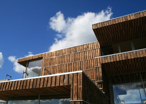 Anyagok (újrahasznosítva) Igen sokféle anyagot alkalmaznak, amelyek mindegyike új ihletet nyújt, és ösztönzőleg hat a tervezésre és a kialakítás finomítására. Új formákra és újszerű szerkezeti megoldási módszerre volt szükség a fellelt anyagok beépítésekor. A fő szerkezet acélprofilból készült, ami textilgyári gépekből származik (a textilipar valamikor igen fejlett volt ebben a térségben). Eme anyagokból elégséges vas nyerhető a teljes villaépülethez. A főhomlokzat olyan fából készült, amit leginkább faforgácslap gyártáshoz használtak volna vagy tüzelésre. A (TKF) kábelgyárban nagy mennyiségű felesleges kábeldob volt, amelyek további használatra sérülésüknél fogva már nem voltak alkalmasak. A kábeldobokat alkotó faanyag azonban általában sérületlen volt, és szabványos méretű. Sok ilyen kábeldobból kinyert bőséges faanyagból készült el az épület homlokzata.