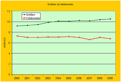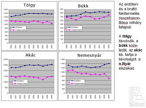 Végül az ÁESZ (ma MGSZH EI) adatai alapján bemutattuk a fakitermelési lehetőségek és a fakitermelés viszonyát összesen és egyes kiemelt fafajokra.