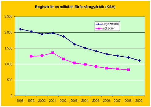 Különböző adatforrásokból adatot gyűjtöttünk, hogy az állami statisztika szerint hány fűrészáru gyártó lehet. A cégbíróságok több mint 40 ezer olyan céget tartanak nyilván, amelyek fő, vagy valahanyadik altevékenységüknek ezt megjelölték. Ebből valamivel több mint 17 ezer számít rendben működőnek, melyek közül 979-nél számít főtevékenységnek a fűrészáru gyártás 2011. október 21-én. A KSH regisztrált és működő fűrészárugyártókat tart nyilván, melyek idősora az alábbiak szerinti csökkenő tendenciát mutatja.