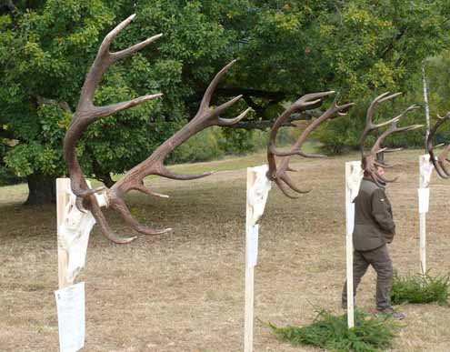 Méltó, de nem túl feltűnő dísze volt ennek az ünnepi terítéknek az a pontosan tíz kilogrammos trófea, melynek tizenhat éve nem volt párja a mátrai vadászterületen. Igazi színt vittek a bemutatóba a változatos, sokszor aszimmetrikus agancs formációk. A legkisebb tömegű - mindössze 2,3 kg-os - trófea például három szárral vívta ki magának a figyelmet. Az elejtett húsz bika átlagos trófea tömege 5,83 kg, míg az érmeseké (1 arany, 3 ezüst, 5 bronz) 7,30 kg.