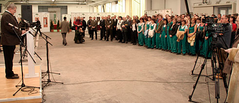 A nyitóbeszéd után Szöllősi Jánosné az MFB Kockázatkezelési Főigazgatóságának ügyvezető igazgatója beszédében örömét fejezte ki hogy ez a beruházás segít megtartani a meglévő munkahelyeket, hiszen 124 fővel kellett korábban a válság hatására a dolgozói létszámot csökkenteni. Császár László, Tapolca város polgármestere a térség meghatározó munkaadói közé sorolta a Parkettagyárat, illetve a Bakonyerdő Zrt-t, mely a város kiemelt adófizetője. Végül Márfi Gyula, a Veszprémi Főegyházmegye érseke mondott áldást a bibliai ácsokról és mesterekről tartott példabeszéde után.