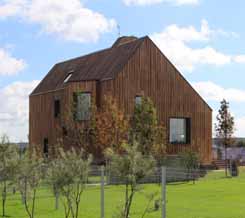 Belső klíma Oroszország első aktívháza a napfénynek és a friss levegőnek köszönhetően egészséges és kellemes belső komfortot biztosít. Az építészek a természetes megvilágítás eltérő módjait alakították ki a különböző terekben. A közreműködő mérnökökkel és energetikai szakértőkkel együtt a belső klímát virtuális modellen szimulálták. A belső komfortot a meleg nyári napokon természetes szellőzés biztosítja, a keresztirányú átszellőzés és a kéményhatás révén. A nyári túlmelegedés ellen a nyílászárók vezérelhető külső-belső árnyékolókkal rendelkeznek. Az intelligens WindowMaster rendszer érzékeli a belső tér CO2-szintjét is, és ennek megfelelően - szükség szerint - automatikusan nyitja-zárja az ablakokat. A felhasználók igényeihez igazítható, egyszerűen kezelhető rendszeren jól nyomon követhető az egyes nyílászárók állapota. Energetika A ház energiaigényét több forrásból fedezi, amelyek együttesen pozitív energiamérleget eredményeznek. A nagy hatásfokú hőszivattyú és a tetőablakok között elhelyezett napkollektorok meleg vizet állítanak elő a padlófűtés és a háztartás számára, a szintén a tetőn elhelyezett napelemek pedig elektromos energiát szolgáltatnak. A nyílászárókat úgy helyezték el, hogy a lehető legnagyobb szoláris nyereséget és a leghatékonyabb átszellőzést biztosítsák. Az átlagosnál jóval nagyobb mértékű természetes fénymennyiség miatt csupán minimális mesterséges megvilágításra van szükség. A vastagon, több rétegben hőszigetelt épületszerkezet alacsony energiafogyasztást tesz lehetővé. A könnyű faszerkezet hőtároló tömegének növelése érdekében a falak belső oldalán speciális gipsz réteget alkalmaztak. Az Oroszországi Passzívház Intézet becslése alapján a ház fűtési energiaigénye a fűtési időszakban 38 kWh/m2/év. A számítások szerint a teljes energiafogyasztás várhatóan 110 kWh/m2/év érték körül alakul.