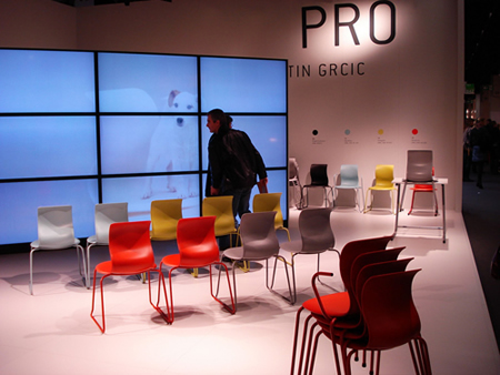 Már csak a helyszínből adódóan is - a több ezer négyzetméter alapterületű Köln Messe, vagyis vásárcsarnok - elég kereskedelmi jellegű volt az esemény. Bár hivatalosan a bútoroké volt a főszerep, de valójában a hidegburkolattól a bölcsőn át a világítástechnikáig számtalan teljesen különböző enteriőrrel kapcsolatos termék megrendelhető volt. Az ekkora méretű dolgok mindig lenyűgözik az embert, mi azonban gyakran csak hangosan felnyüszítettünk egy-egy elborzasztó tárgy láttán. A változó színvonalat nagyjából a személyes kedvencünk, a letisztult formavilágú, mégis játékos Ligne Roset pavilonja és rémisztő siófoki szórakozóhelyeket idéző fehérlepedős, Swarovski kristályban úszó enteriőrök határolta számegyenesen tudnánk érzékeltetni. A kommersz jelleget nem csak a Vidámpark Elvarázsolt Kastélyából ismerős masszázsfotelek, hanem a mikrofonba magyarázó porszívó ügynök ember is erősítette. Érdekes volt azonban, hogy mindezek mellett békésen megfértek a ikonikus Thonet székek utódai, vagy éppen Konstantin Grcic (2011-ben az év designere) legújabb iskolai széke, a Pro School Chair modelljei mellett. A négy emelet végigjárása után a gyanúnk egyre erősödött, miszerint a folyamatosan fenntartott trópusi hőség és a Mövenpick fagyi árusítása között komoly gazdasági összefüggés van. Kifelé menet megállapítottuk, hogy szakmai szemmel csalódást okozhat a kiállítás. Az itt felhalmozott termék-rengeteg nem enged következtetni az aktuális trendekre, azonban a német gazdaság- és piac méretére annál inkább. Öröm volt látni, hogy a kisgyerekes családok hogyan rollereznek a standok és a jól öltözött nyugdíjasok között. Amennyire nem áll jól a németeknek a bulizás, a szervezés és a precíz kivitelezés annál inkább. A vonalkóddal ellátott ruhatári jegyek segítségével másodpercek alatt hozzájutottunk a kabátunkhoz és elhagytuk a vásári forgatagot.
