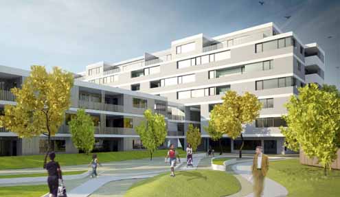 A Bécs 22. kerületében, Donaustadtban épülő társasház Ausztria első többszintes fa bérháza. Ezt a részt a Schluder Építésziroda, a hozzá kapcsolódó három háromszintes részt pedig a Hagmüller Építésziroda tervezte a "Faépületek a városban" elnevezésű pályázat keretében.