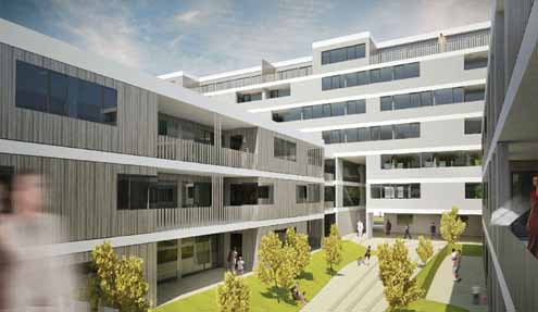 A 8.440 négyzetméter alapterületű bérház egy hatemeletes középső és három háromemeletes épületrészből áll majd. A középső rész előre gyártott rétegelt falemezekből, az alacsonyabb épületrészek tiszta faszerkezetekből készülnek. Az épület kívülről hagyományos vakolatot kap, belül pedig gipszkarton borítás teszi lehetetlenné, hogy tűz esetén lángra kapjon a faszerkezet. A hatemeletes épületelem alapja - a bécsi építésügyi előírásoknak megfelelően - vasbetonból készül, akárcsak a lépcsőházai. Az épületegyüttesben 101 szociális bérlakás lesz, mindegyikhez tartozik majd loggia, erkély vagy terasz. A földszinten egy vendéglakás és a közösségi helyiségek kapnak helyet.