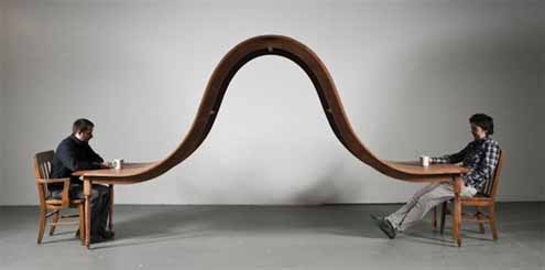 Egy építész úgy gondolta, hogy elkészíti az ideális ebédlőasztalt azok számára, akik bár egy asztalhoz ülnek, mégsem vágynak olyan nagyon egymás társaságára. A művész az asztalt tömeggyártásban szeretné készíteni. Kellemes beruházás lehet régóta házas embereknek.