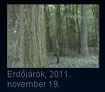 2011. október 8-án indult a 12 hetes Erdőjárók tv sorozat az M1-en. A nézők a 22 állami erdészettel, azok munkájával, és - természetesen - vadgazdálkodásukkal ismerkedhetnek a 25 perces részekben. Az ötlet Molnár Péter, az egyik kereskedelmi televízió Nógrád és Heves megyei tudósítójának fejéből pattant ki, amikor 2010. novemberében az Ipoly Erdő Zrt-nél forgatott. Az átlagos állampolgárok nem látnak bele az erdőgazdaságok működésébe, sokszor tévesen ítélik meg munkájukat. A sorozat - amelyet az erdőgazdaságok anyagilag is támogatnak - azt hivatott bemutatni, hogy az erdész nem favágó, a vadász pedig nem puskás gyilkos. A sorozat egy-egy részlete két erdőgazdaság működésének sajátosságait, szépségét és nehézségét mutatja be. Molnár Péter már korábban is "kilincselt" hasonló műsorok szinopszisával, de rendjére azt a választ kapta: "jó-jó, de ugyan kit érdekel ez?". Most azonban úgy tűnik, fordult a kocka a közszolgálati médiában: olyan személyek kerültek döntési pozícióba, akik az új struktúrában feltétlenül szánnak műsoridőt a nem "sötétzöld", természetről szóló műsoroknak. Az Erdőjárók karácsonyig futott a televízióban, de a készítők már a további tervekkel foglalkoznak, amelyek túlmutatnak a félórás részekből álló sorozaton, sőt a televízión is. Az Erdőjárók első része 2011. október 8-án, szombaton 14.05-kor ment az M1-en. ipolyerdo.hu 2011-10-21 alapján A sorozat 2011. október-december szombat délutánjain volt látható, illetve az alábbi kapcsolókkal (a képekre kattintva) az MTV videótárában utólag is bármikor megtekinthető.