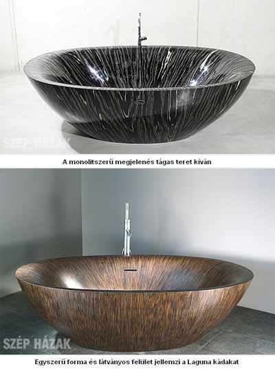 A Laguna sorozat minden darabja igazi műremek, a fürdőszoba ékszere. Természetesen ezekhez a kádakhoz valóban szoba méretű helyiség kell, főleg, hogy zömükben szabadon állók. Az ergonomikus kialakítás alap tulajdonsága minden Laguna kádnak, a méret pedig modelltől függetlenül pazar, akár két személy is kényelmesen elfér bennük. Ahhoz, hogy a fa évtizedekig ép, sőt szép maradjon, elengedhetetlen a megfelelő bevonat. A kádak bevonatát a legmostohább körülmények között tesztelték - a know-how a jachtépítésből adott volt - és ezután került a fafelületre.