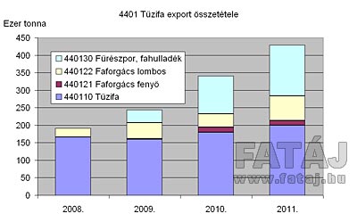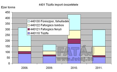 A 440130 Fűrészpor, fahulladék összetétele: Fűrészpor, Pellett, Brikett, Fahulladék és Más fahulladék, amint a fenti táblázatban látható volt. A Fűrészpor és a Más fahulladék az exportban végig nincs jelen, importban pedig csak 2008-ban. E csoport tartalmát tehát lényegében a Pellet, a Brikett és a Fahulladék adja. A Pellet import kivételével mindegyiknél arányaiban egész jelentős a mennyiségi növekedés az utóbbi 3 év során.