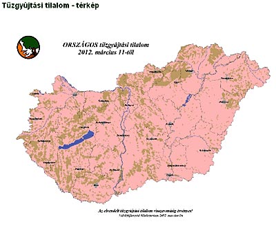 Az erdőtüzek ügyéről részletesebben olvashat az MGSZH Erdészeti Igazgatóságának e témával foglalkozó lapján. E menüpont almenüi között különösen fontos a tűzgyújtási tilalom térkép, amely most azt mutatja, hogy március 11-től országos tűzgyújtási tilalom van érvényben.