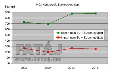 Trópusi hengeresfa importunk tehát gyakorlatilag nincs. Néhány m3 időnként előfordul, de az évi fél-ezer m3-t sem érte el egyszer sem. A legnagyobb tétel továbbra is a fenyő hengeresfa, ami mellett a tölgy, bükk és egyéb lombos fafajok még a számottevőek.