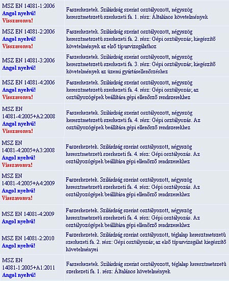Eddig a 2"x4" méretű szerkezeti fa európai termelőinek JAS (Japan Agriculture Standard) tanúsítványra volt szükségük. Február 6-tól az EN 14081—1 a szerkezeti fa szilárdsági értékei tervezéshez szabványnak megfelelőséget elfogadják Japánban.