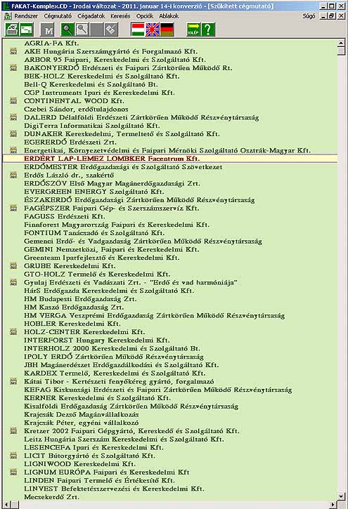 A FAKAT-Komplex.CD adatbázisából sokrétű (31) szempont alapján lehetséges a felhasználó által keresett vállalkozások, illetve azok csoportjainak gyors kigyűjtése, listázása, exportálása, nyomtatása.