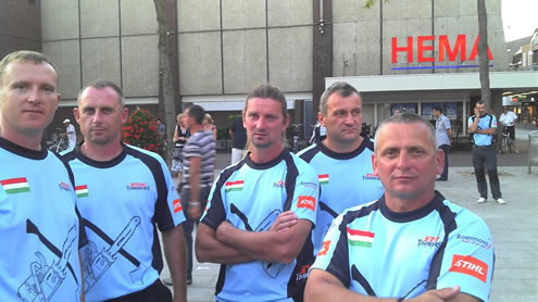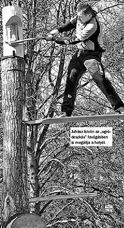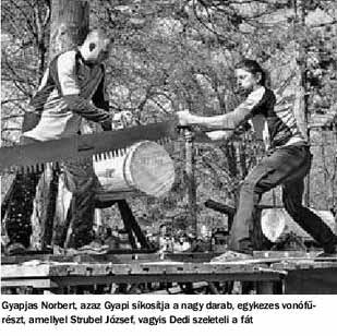 Végül a vállalkozó kedvűek következnek. Tatáról, Bokodról, Vértesszőlősről. Fűrészt nyomnak a kezükbe, a válogatott tagjai segédkeznek nekik, és máris ritmusra járnak a 10 centis fogú acélpengék. Az időeredmények elmaradnak ugyan a bajnokokétól, ám a lelkesedés példaértékű, a veríték valódi.