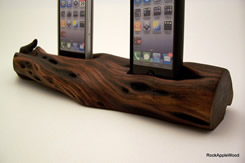 Az iOS rendszerű cuccokhoz számtalan kiegészítő van, legyen az dokkoló, golyóálló tok, óra, vagy fegyver alakú foglalat a játékhoz. A dokkolók esetében is annyiféle termék van fából, műanyagból és kőből, hogy Dunát lehet velük rekeszteni. Mégis vannak időről-időre olyan darabok, melyek nem extrém jellemzőikkel, hanem visszafogott, de mégis mutatós kialakításukkal tűnnek ki a tömegből. A RockAppleWood is egy ilyen dokkoló, mely teljes mértékben kézzel készült, és elkészítéséhez nem vágtak ki egyetlen fát sem, hanem kidőlt, vagy éppen újrahasznosított fából készül. A beépített 1,2 wattos hangszóró mellett kialakításra került egy iPad és egy iPhone/iPod dokkoló. Mivel nincs két egyforma alapanyag, ezért minden egyes elkészült darab egyedi, sajátos formájú, pontosan ezért az ára is széles spektrumon változik, az egészen egyszerűen elkészített 40 dollárod modelltől a 600 dollárosig.
