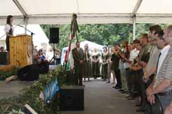 Az üdvözlő szavak mellett az elnök úr méltatta a Tolna megyei vadászok múlt- és jelenbeli eredményeit, s a hagyományok folytatására bíztatta a részvevőket. Tóth Ferenc kormánymegbízott, Tolna Megyei Kormányhivatal vezetője a rendezvény másik fővédnöke megnyitójában hangsúlyozta, hogy Magyarország újra vadászati nagyhatalom kíván lenni, s ehhez a kormány minden hathatós támogatást megad, közte a törvényi feltételeket, a bürokratikus háttér lebontását. Ezt követően elismerések átadására került sor. Nimród-érmet vehetett át Tóth Ferenctől Farkas Attila, a Gazda Vadásztársaság tagja, illetve Záborszki Zoltán, a Németkéri Vadásztársaság tagja. Hubertusz-kereszt ezüstfokozatú kitüntetését kapott Kiss Zoltán, Horváth Péter, Radány Tibor, Szalai József, a nagykónyi Koppánymenti Vadásztársaság tagjai, valamint Eck József, a csámpai Béri Balogh Ádám Vadásztársaság tagja. A díjakat Ribányi József adta át. A Hubertuskereszt aranyfokozatú kitüntetését Popp Miklós, a Völgységi Természetbarát és Vadász Egyesület tagja vehette át Gőbölös Pétertől, a Gyulaj Erdészeti és Vadászati Zrt. vezérigazgatójától.