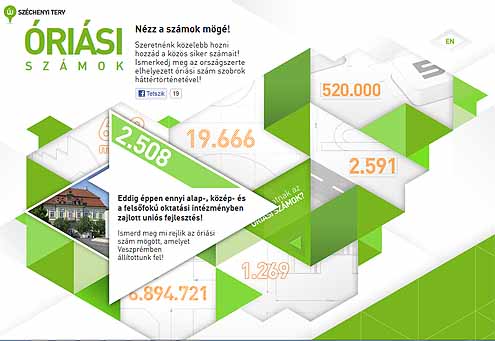 Az első számot megjelenítő installációt Veszprém Óváros terén helyezték ki. Az "Oktatás hintáját" vagy más néven az óriási hintabaglyot Szőke Gábor Miklós, szobrász és Huszár András, építész készítette, hogy művészi formába öntse az Új Széchenyi Terv keretén belül az oktatásban eddig megvalósult sikeres fejlesztést.