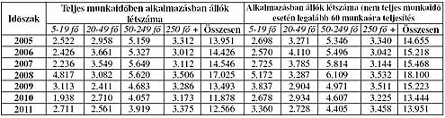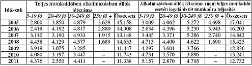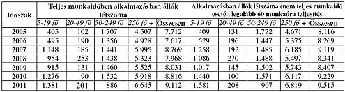 előző évi 0,9%-os csökkenést követően 2011-ben 19,6%-kal esett. A többi létszámkategóriában