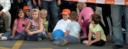 Gyerekek és persze sok felnőtt is érdeklődve várta a verseny után a tvből ismert TimberSport bemutatót.