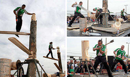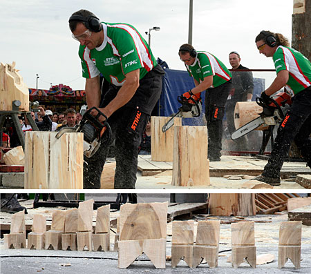 A TimberSport Show persze nem csak bemutató lehet, ezt is lehet versenyként is művelni, ahol minden számnál mérik az időt, a műveletek pontosságát. Ezt a bemutatót a STIHL karolta fel és csinált belőle világméretű versenyt. Ennek idei világbajnoksága Norvégiában, Lillehammerben volt. Fénykép és szöveg: Mőcsényi Miklós
