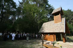 Ezt követően a vadászkürtösök játéka vezette fel a kápolna megáldását, melyet Hegedüs János plébánosa atya celebrált, a szertartáson a Plébánia
