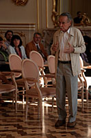 A résztvevők érdeklődéssel hallgatták az üdvözlő beszédeket, majd Alföldy Gábor (MNG) vetítettképes ismertetését a park rekonstrukcióval érintett részeiről.