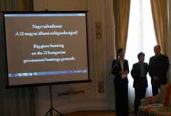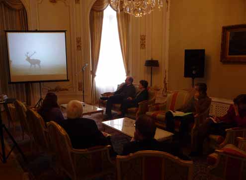 A 22 magyar állami erdészeti Zrt. vadgazdálkodását és vadászatát a Gyulaj Erdészeti és Vadászati Zrt. vezetője Gőbölös Péter vezérigazgató mutatta be, akinek képekkel és tényadatokkal alátámasztott figyelemfelkeltő előadását élénk szakmai párbeszéd követte. Kiegészítésként levetített magyarországi vadász videó felvételek után barátságos beszélgetés indult a francia jelenlevők és a magyar vendéglátóik között.