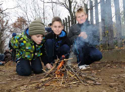 A feladat azonban kicsit bonyolultabb volt, hiszen csak "kimért porcióval" indulhatott a tűz csiholása. Az elkészítéshez egy kis darab papír, egy maréknyi szalma és nád, valamint néhány vastagabb ág, és 2 szál gyufa állt a rendelkezésre. A munka nem volt könnyű, kinek hamarabb, kinek később, de a végén mindenkinek lobogott vagy pislákolt a tüze. A fáradt versenyzők megérdemelten tértek vissza az ebédlőbe, ahol már várta őket a meleg csipkebogyótea és a friss pogácsa. Összegzésként egy résztvevőkísérő szavai: Dobos Erika Ildikó: De jó volt! Köszönjük szépen, igazán érdekes tanulságos és vidám délutánt töltöttünk tegnap a "Tüskevárban"!