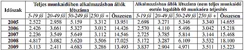 ALKALMAZOTTI LÉTSZÁM AZ ERDŐGAZDÁLKODÁSBAN, A FA- ÉS BÚTORIPARBAN LÉTSZÁM-KATEGÓRIÁNKÉNT (konkrét számok a csatolt dokumentumban)