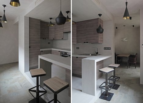 A természetes megvilágítás eme hiányát jelentő helyzet megoldására Peter Kostelov építész merész megoldást alkalmazott. Kostelov a lakás közepéről a határolófalakat eltávolította, és üveggel helyettesítette. Így lehetővé vált, hogy a lakás mindkét oldala felől beszűrődő fény eljusson középre is, és az a meglehetősen nagy térrész is kellő világítást kaphasson, amelyik eddig árnyékban maradt.
