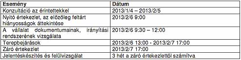 A kiértékelési folyamat tervezett menetrendje az alábbi: