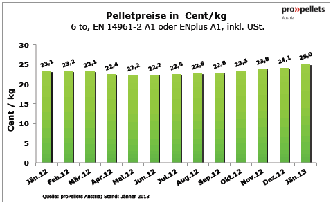 A fapellet árak, amint azt az inflációtól megtisztított adatok mutatják, az lmúlt több mint egy évtized alatt meglehetősen stabilak voltak. Ausztrián belül régiók szerint vannak áreltérések, de a szélsőértékek között a távolság csak mintegy 1,5 Euró.