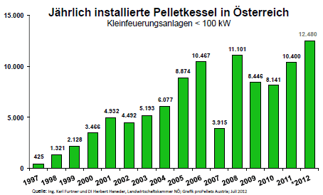 A ProPellets ausztriai szervezet honlapja számos érdekességet tartalmaz a fapellettel kapcsolatban. Ausztriai támogatási lehetőségek, felhasználási tanácsok, piaci tendenciák, stb. Hírlevelet is működtetnek, mely hozzánk is eljutott. 2013. január 16-án üzembe helyezték Ausztria százezredik pellet kazánját. Az 1000 lakosra jutó 12,5 pellet fűtőberendezéssel Ausztria Európa csúcstartója. Az osztrák pellet kazánok piacvezetők a világpiacon. Ausztriában most évi 810 ezer tonna fapelletet használnak fel, ami CO2 emisszió szempontjából több mint 1 millió tonna kőolaj megtakarítást jelent. Ausztriában 30 üzemben évi 875 ezer tonna fapelletet állítanak elő. Németországban a támogatott biomassza fűtés terén az osztrák pellet kazánok részesedése 60%. Ugyanakkor az Ausztriában gyártott pellet kazánok 80%-a exportra megy. Az osztrák biomassza fűtés technológiák gyártói évi 20%-os növekedés mellett mintegy 1 milliárd Euró árbevételt értek el és 5.000 embernek adnak munkát. Az első pelletkazánokat 15 évvel ezelőtt helyezték üzembe, majd elérték és meghaladták az évi 10.000 átadott kazánt, ami sokkal gyorsabb növekedés e téren bármely más EU tagországéhoz képest. Az 1000 főre jutó pellet kazán Ausztriában 12,5; Dániában 11,8; Svédországban 11,1; Finnországban 4,7; Németországban pedig 2,3.