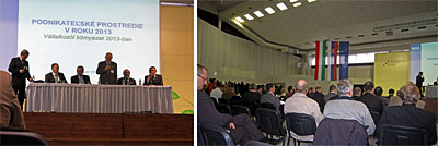 Prof. Dr. Molnár Sándor és Igor Patras elnöki köszöntői után Marian Jusko, a Szlovák Vállalkozók Szövetségének főtitkára tartott plenáris előadást "Változások a szlovákiai gazdasági környezetben 2013-ben" címmel. Ezt követően a résztvevő 65 fő magyar és kb. 80 szlovák szakember három szekcióban folytatta a megbeszéléseket az együttműködési lehetőségekről. Különösen izgalmas viták bontakoztak ki a Bútoripari és a Fűrészipari szekciókban. A Faépítészeti szekcióban irigylésre méltó volt hallani, hogy Szlovákiában még az elmúlt évben is több, mint 3.000 lakás épült fából (Magyarországon ennek kb. a tizede).