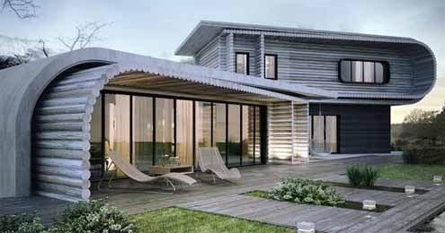 A tervezési nehézség abból adódott, hogy próbálták megőrizni a fa melegségét és otthonosságát, amit egy rönkház nyújthat. A kezdeti ielgondolások után azonban egy "S" betűt formázó vasalt betonhéj alkotja a ház födém és tetőszerkezetét. Ezáltal a fák inkább dekorációs célt szolgálnak, mintsem tartószerkezetit.