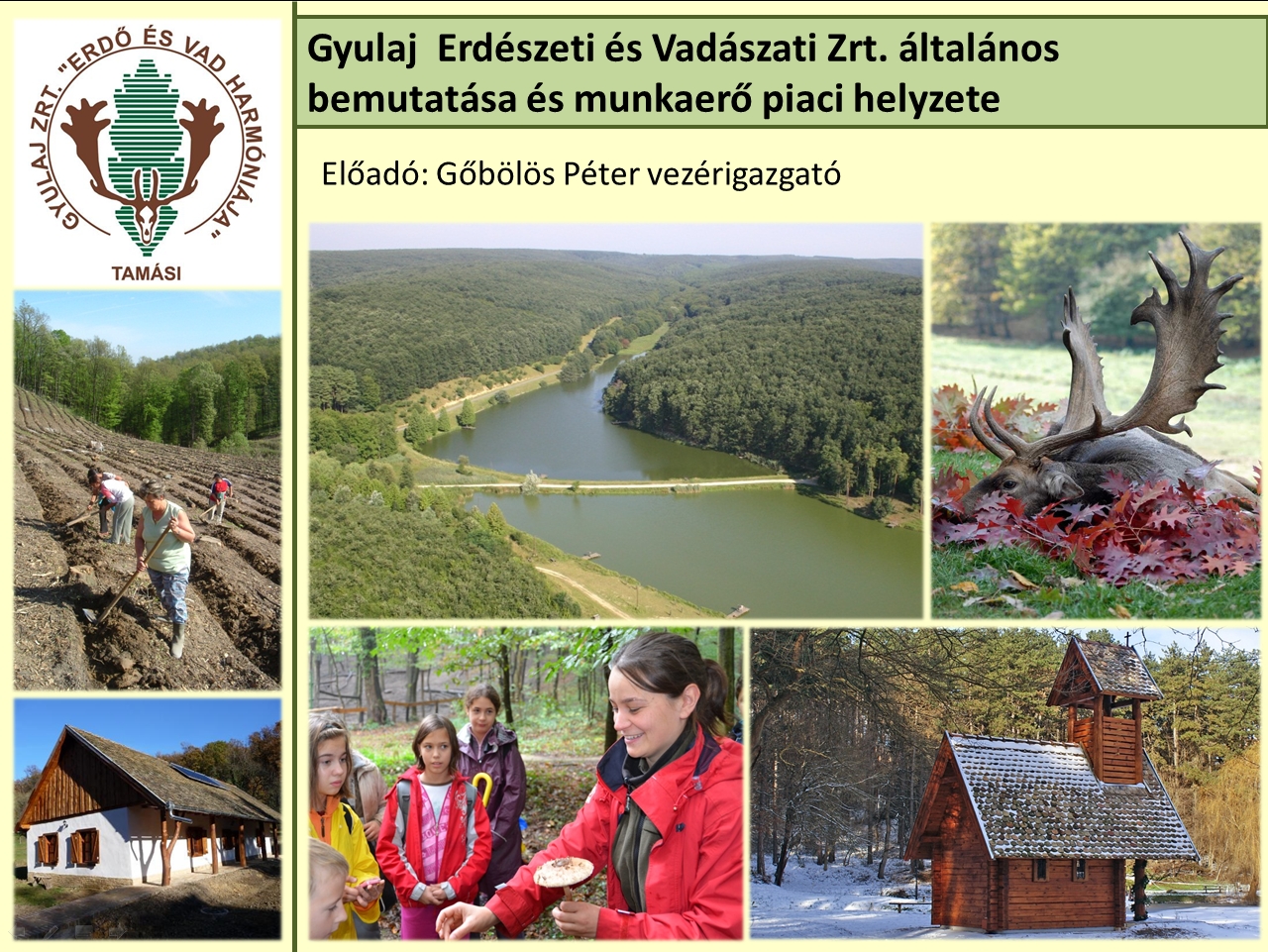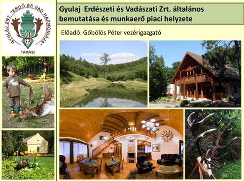Gőbölös Péter vezérigazgató köszöntötte az érdeklődőket, köztük az illetékességi területükhöz tartozó 37 település megjelent polgármestereit, a civil szervezetek képviselőit, a partner cégek vezetőit. Ismertette a vállalat erdészeti, vadászati és egyéb tevékenységét, melyeket Tolna megye erdőterületeinek harmadán, 23 ezer hektár állami erdőterületen és ezzel együtt közel 30 ezer hektár vadászterületen végeznek. A cég a hátrányos helyzetű térség egyik legnagyobb munkáltatója, 100 fős vállalati létszám mellett több, mint 200 személyt alkalmaznak közfoglalkoztatásban, de a közreműködő 80 partner vállalkozó is majd 300 családfenntartót foglalkoztat. Gőbölös Péter a vadászattal kapcsolatban arra is kitért, hogy a fogyatékkal élő vadászok és vendégek számára ability szobát alakítottak ki, valamint átépített járművel biztosítják a vadlesek kerekes székes megközelítését is. Mint kiderült, a vállalat saját bevételéből sokat áldoz közjóléti tevékenységekre, melyek közül a már országosan elismert Lengyel- annafürdői Erdei Iskolát és a Turisztikai és Természetismereti Központot, a Miklósvári Parkerdőt és a fürdő vendégek által is közkedvelt tamási vadasparkot emelte ki. Az előadást követően levetítették a "A Mi erdőnk" televíziós sorozatot, amelyet a közelmúltban forgattak a Gyulaj Zrt. tevékenységéről. Ezután az egyes ágazatok vezetői adtak részletes tájékoztatást szakterületükről, majd a három erdészetvezető - Palánki Gábor a tamási, Szi Benedek Sándor a pincehelyi és Stein Krisztián, a hőgyészi - mutatta be területének komplex gazdálkodását, egyedi jellemzőit. Forrás: GYULAJ Zrt. a Tolnai Nápújság március 26-i írása alapján