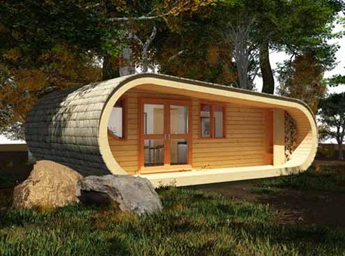 "A szerkezet természetes alapanyagok felhasználásával készült, és 5 nap alatt felállítható. A terep megfelelő előkészítésével minimális mértékben van hatással a természetes környezetre. Négy személy is kényelmesen elfér a 6×8 méteres beltérben, ahol összevont konyha, étkező és nappali helyiség található. A folyamatos tetőzettel borított ovális forma vizuálisan összeköti a faházat a kinti környezettel, ablakai és a mélyen vágott eresz folytán."