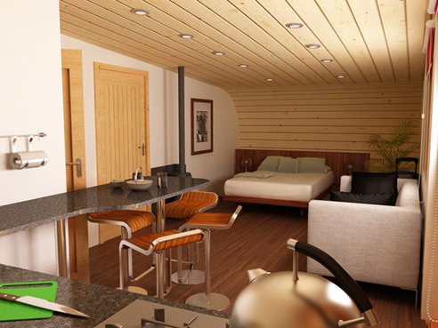 Mi több, az eco-PERCH még az egyesült királysági Caravan & Mobile Homes Act szabályaihoz is igazodik, melyek a mobilis lakóházak és lakókocsik paramétereit határozzák meg. Ha pedig elnézzük a belteret, ki nem lakna szívesen egy ilyen faházban? Forrás: AlternatívEnergia