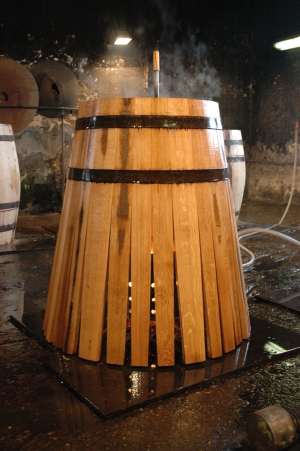 Egy hordó is lehet "cuvée" ehet, hogy nem is gondolnánk, de a hordók alapanyagát is gyakran házasítják, hogy minél komplexebb hatást tudjon kifejteni a borra. Az Európai Kádárok üzemében is gyakran készülnek "vegyes" hordók, zempléni és mecseki tölgy kombinálásával. Szinte hihetetlen, hogy egy tölgyfa kb. 400 liter vizet áramoltat "vénáiban" nap mint nap. Ezzel rengeteg ásványi anyag épülhet be a fa szöveteibe, amely szintén meghatározó karakterrel gazdagítja a hordót, majd a bort. Nem kevésbé érdekes adat, hogy egy meglett tölgyfának kb. 600 000 levele van, amelyen keresztül fotoszintetizál, s az előállított cukor egy része szintén beépül a fa szövetébe. A hordó dongáinak pörkölése során ez a cukor például karamellás vagy grillázsos aromákat hoz ki a tölgyből. Azt is megtudhattuk, hogy csak téli kitermelésű (a vegetációs időszak utáni) fát vásárolnak hordókészítéshez. Minden egyes rönköt ellenőriznek, válogatnak, s csak a görcsmentes, szálegyenes fákat használják hordókészítésre. A rönk vastagabb talprészét például nem használják dongakészítéshez, csak a palásthoz.
