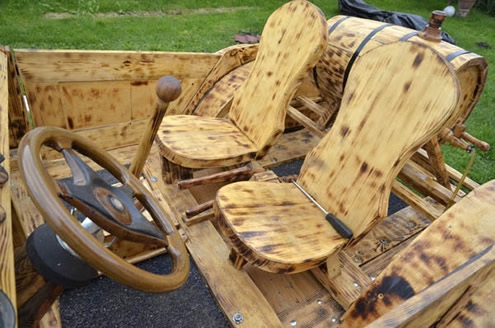 Az alternatív autógyártás örömeit felfedező férfi mindössze fél év alatt alkotta meg figyelemreméltó művét, melyet - a motor, a gumik, a szíjak és a csavarok kivételével - kizárólag fából készített el. A míves kivitelű gépjárművet egy 126-os Polski Fiat motor hajtja, melyet egy szintén fából készült, kétsebességes váltóval lehet rábírni a 15 km/órás végsebesség elérésére.