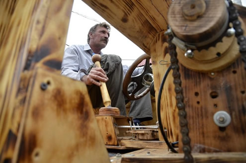 - Szeretek fával dolgozni. És szeretek egyedi tárgyakat létrehozni, amelyek felkeltik az emberek figyelmét- mondta az 51 éves Puskás István a Telegraph angol napilapnak. A mezőgazdasági munkás legutóbbi műve egy autó, amely szinte kizárólag fából készült.