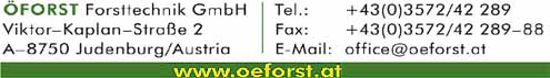 Termékeink: A forgalmazott termékeink között vannak a John Deere erdőgazdasági gépek, Waratah harveszter adapterek és daruk, Doosan erdei forgókotrók, Dutch Dragon aprítógépek, Kotschenreuther erdei traktorok, Moipu harveszterek és görgők, Indexator rotátorok, Hultdins kanalak, Pewag láncok, Oregon láncfűrész tartozékok, mobil üzemanyag tárolók valamint magas szakítószilárdságú acélkötelek. (x) ÖFORST GmbH.