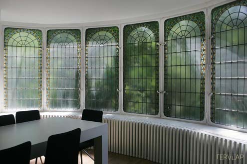 A díjazott pályázat a kiállításon kiemelt helyen, négy tablón szerepelt. A tervezés kimagasló színvonala mellett a pályázat installálása is példaértékű. A tablókon 5-6 kép, szöveg és három alaprajz a bemutatást minden részletre kiterjedően, ugyanakkor áttekinthetően dokumentálta a zárterkély gazdagon díszített ólomüveg ablaksorától - amelynek parapét részén az öntöttvas radiátorok függőleges osztását imitáló kiképzéssel oldották meg - az új belső lépcsők konstruktív és látványos kialakításán át a tetőtér ácsszerkezeti csomópontok hangsúlyos megoldásáig. A villát eredetileg Tauszig Béla (1883-1973) és Róth Zsigmond (1885-1970) építészek tervezték. Ezt a tényt a villa falán emléktábla rögzíti. A belsőépítész tervezők a Komp Design munkatársai.