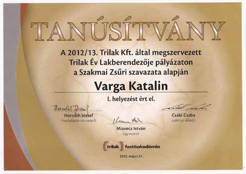 A Trilak Lakberendezője 2012. pályázat nyertesei: Első helyezett: Varga Katalin