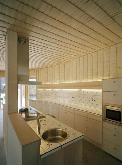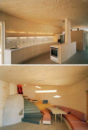 A finn hagyományt követve a fa mindenütt megtalálható a lakásban, szerves kapcsolatot alkotva a lakójával, íveltre hajlított megjelenéssel, ahol a beton és az acél másodlagos szerepet játszik.