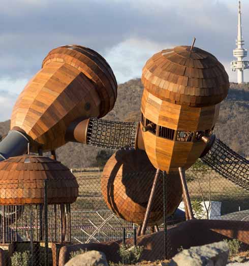 A Camberrai Nemzeti Arborétum-i Játszótér megmutatja, hogy hogyan lehet szinte játékosan valóban egyedülálló és ösztönző játszóteret megalkotni a legkülönbözőbb korú gyerekeknek, egyúttal betartva a legszigorúbb biztonsági előírásokat is. Forrás: Contemportist Fordítás: Ternóczi Endre - okl. erdőmérnök honlap: Poliglott Szakfordítói Iroda