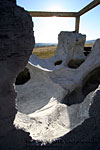 Az építészek a csórompusztai szélcsatornát szelídítik meg egy szélerőművel, amely a vizuális élmény mellett a fenntarthatóságra és a természeti erőkkel való közelségre hívja fel a figyelmet. Az egymással szemben induló két spirálívben elhelyezett 24 kompaktlemez lapát tengelye a helyszínen készült, amely tizenkét-szögletű hasábbá lett csiszolva. A hat méter magas erőmű 2,5 x 2,5 méteres talapzaton áll, oldalára szélterelők készültek.