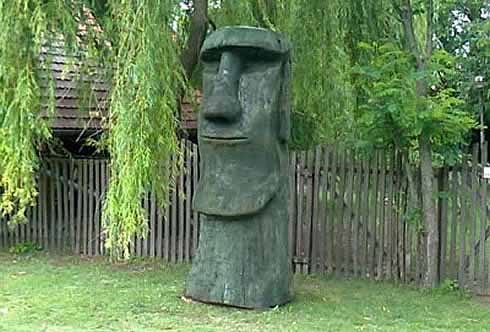 Pusztamérges határában, a Ruzsára vezető út mentén az egyik tanyát egy óriási fafej őrzi. Alkotója, Papp Attila (41) elárulta, évekkel ezelőtt rabul ejtették a Rapa Nui kőszobrairól látott fotók. Úgy gondolta, neki kell egy ilyen, és meg is tudja csinálni, nem lehet túl bonyolult. Terve 4 évig váratott magára, mire rábukkant a megfelelő faanyagra; a szomszédos spárgaföldön öles nyárfákat vágtak ki, és az egyik rönk ott maradt, mintha csak faragásra teremtették volna.